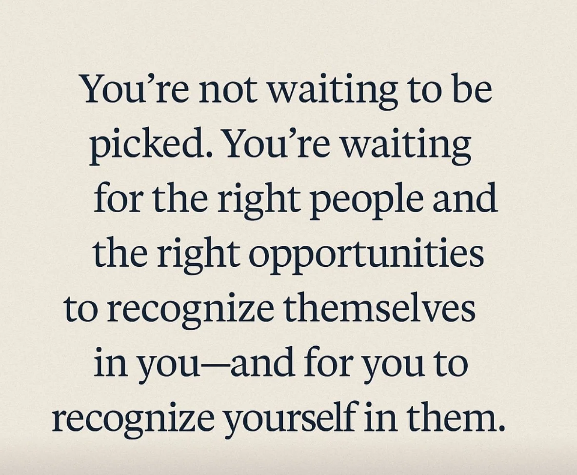 You’re not waiting to be picked. You’re waiting for the right people and the right opportunities to recognize themselves in you — and for you to recognize yourself in them. That’s not luck. That’s alignment. And when it happens, it doesn’t feel like being selected. It feels like belonging.